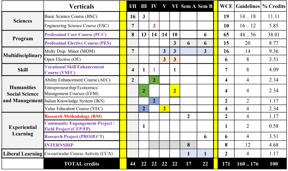 Following table shows the WCE-CSE Framework aligned with NEP 2020 Policy for 2023-2027 Batch of B.Tech in CSE.
