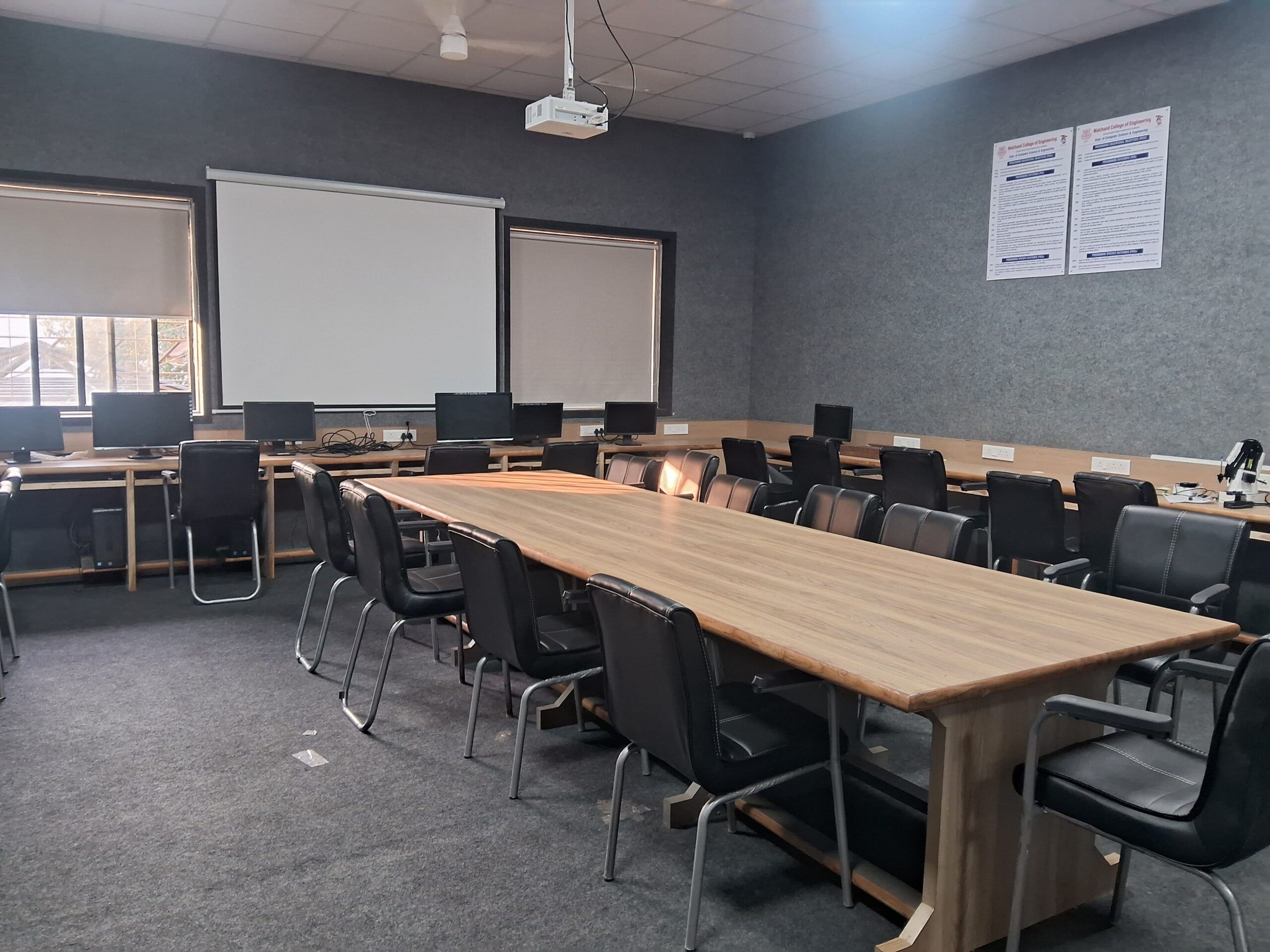 The Postgraduate (PG) Research Laboratory is a high-performance computing and research facility established to support advanced postgraduate studies, simulations, and innovation-driven research across domains such as data science, AI, cybersecurity, and high-end graphics computing. The lab houses 10 powerful HP computer systems, each equipped with Intel Core i7-13700 processors @ 2.10GHz, 16 GB RAM, 1 TB HDD, 500 GB NVMe SSD, and NVIDIA GeForce RTX 3060 graphics, providing the required computing power for deep learning, visualization, and parallel processing tasks. These systems run on Windows 11 Pro, offering a modern and secure operating environment. For seamless networking and high-speed data transfer, the lab is supported by enterprise-grade switches including the Extreme X440 G2 24t-10GE4 and Extreme 5320-24T-8XE, ensuring reliable and scalable connectivity. An Epson EB-X14 LCD projector enhances presentations and research discussions, while an Epson L565 All-in-One printer supports documentation and report generation needs. Power continuity is ensured by a 6KVA Vertiv UPS supported by 16 SMF batteries, minimizing interruptions during critical research work. This advanced infrastructure makes the PG Research Lab a dynamic hub for scholarly research, technical innovation, and collaborative academic exploration at the postgraduate level. |
