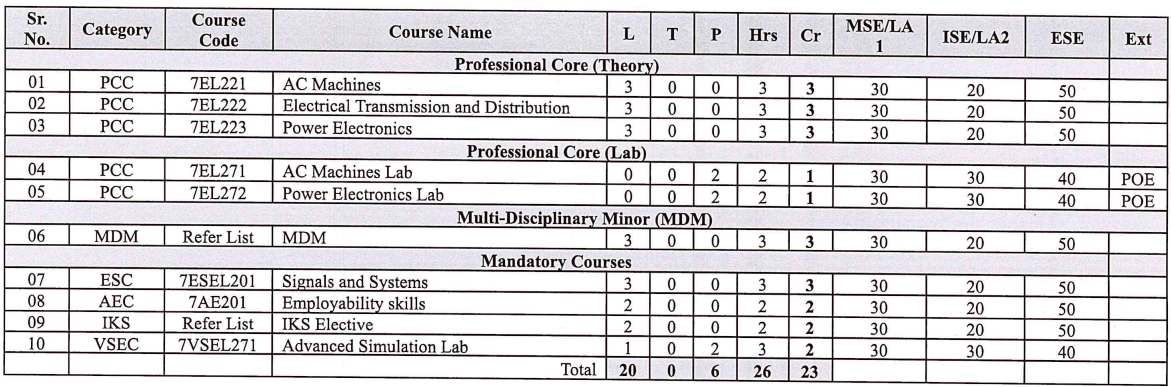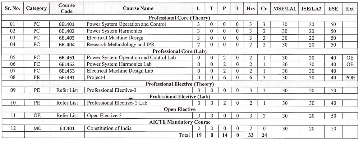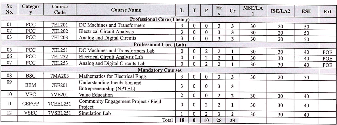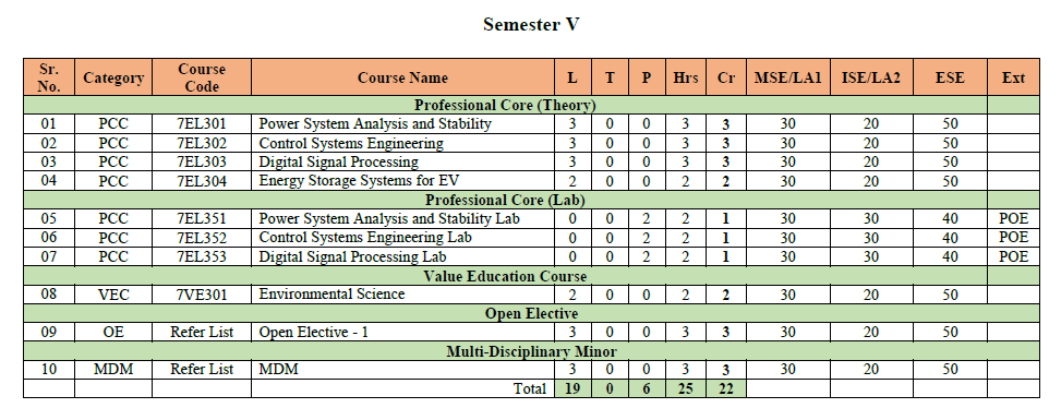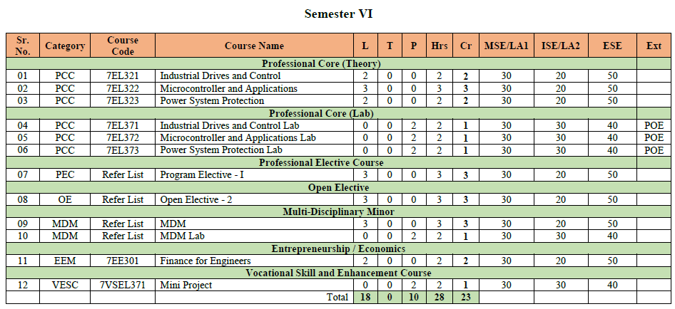 Curriculum – The B. Tech curriculum in electrical engineering is designed to provide students with a comprehensive education in electrical engineering. In the Academic Year 2024-2025 curriculum of First year and Second Year is implemented as per NEP 2020 policy which includes multidisciplinary minor (MDM) as well. CSE department offers MDM in electrical engineering.